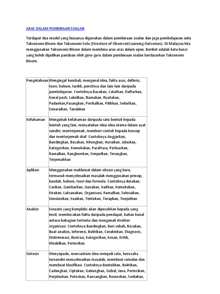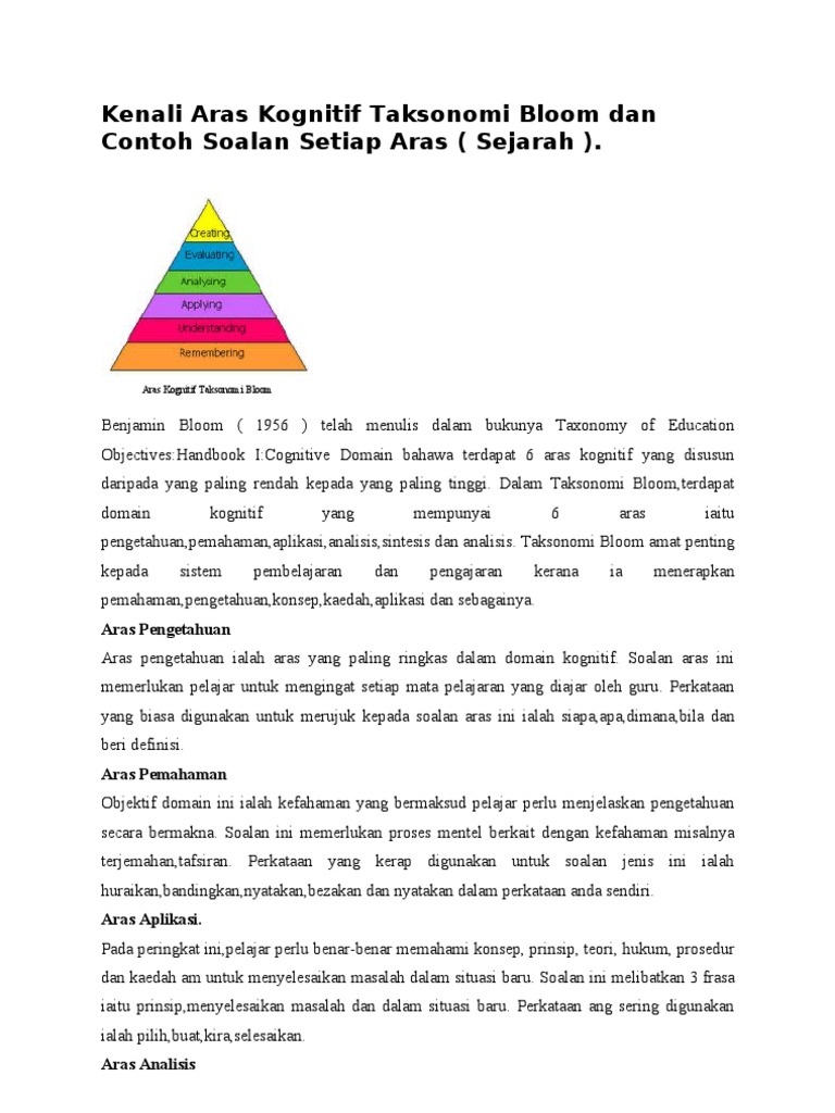 Kenali Aras Kognitif Taksonomi Bloom Dan Contoh Soalan Setiap Aras Pdf